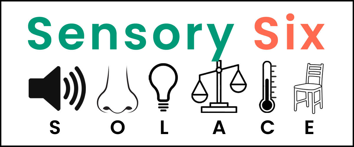 "Sensory Six" refers to the 6 sensory channels that inform the way we experience the world.In individual & internal context it refers to the typical 'five senses + one', aka hearing, sight, smell, taste, touch, plus temperature.In the context of external sensory inputs (aka the SOLACE Model), it refers to the environmental sensory load factors: Sound, Olfactory (smell), Light, Accumulation, Climate, and Ergonomics