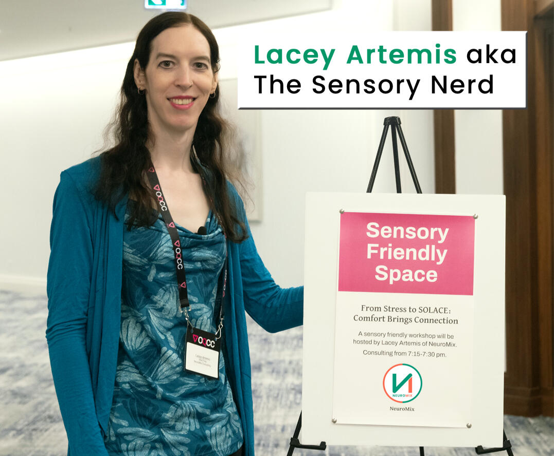 Lacey Artemis brings years of experience delivering talks ranging from corporate training to keynote presentations, with a focus on sensory comfort, inclusion, and human-centered design.