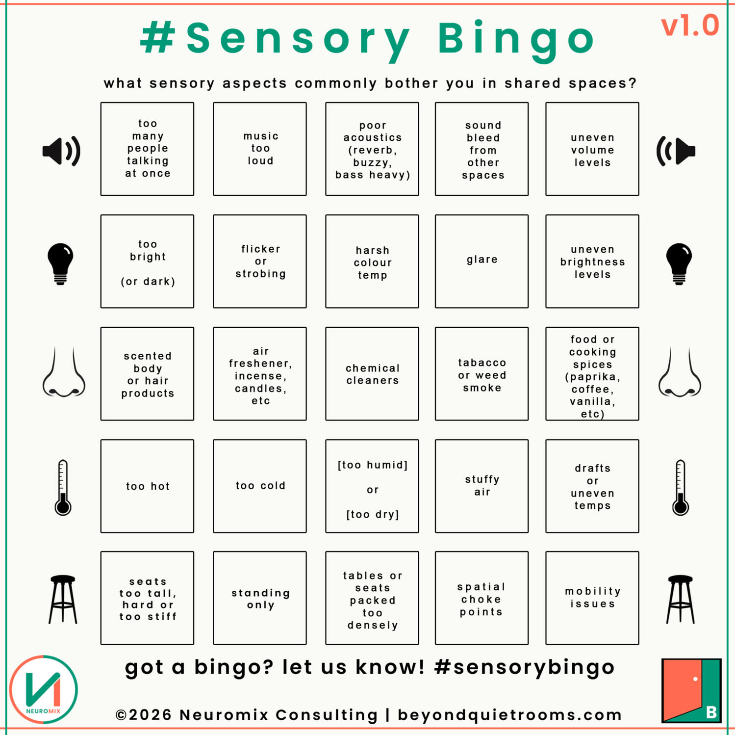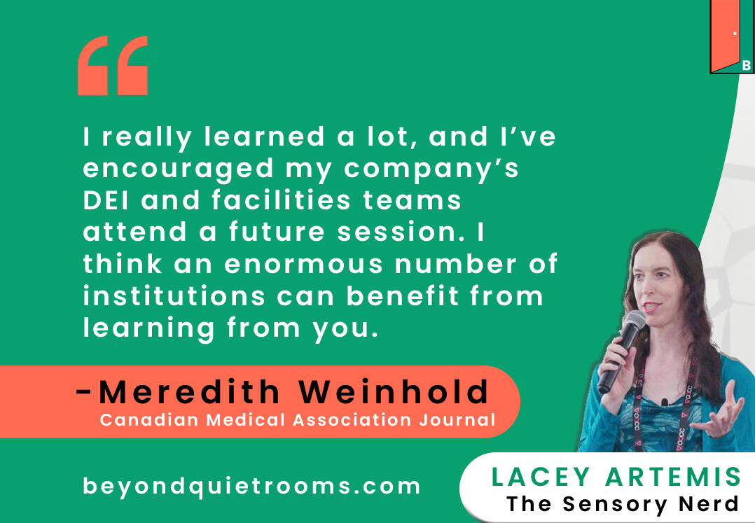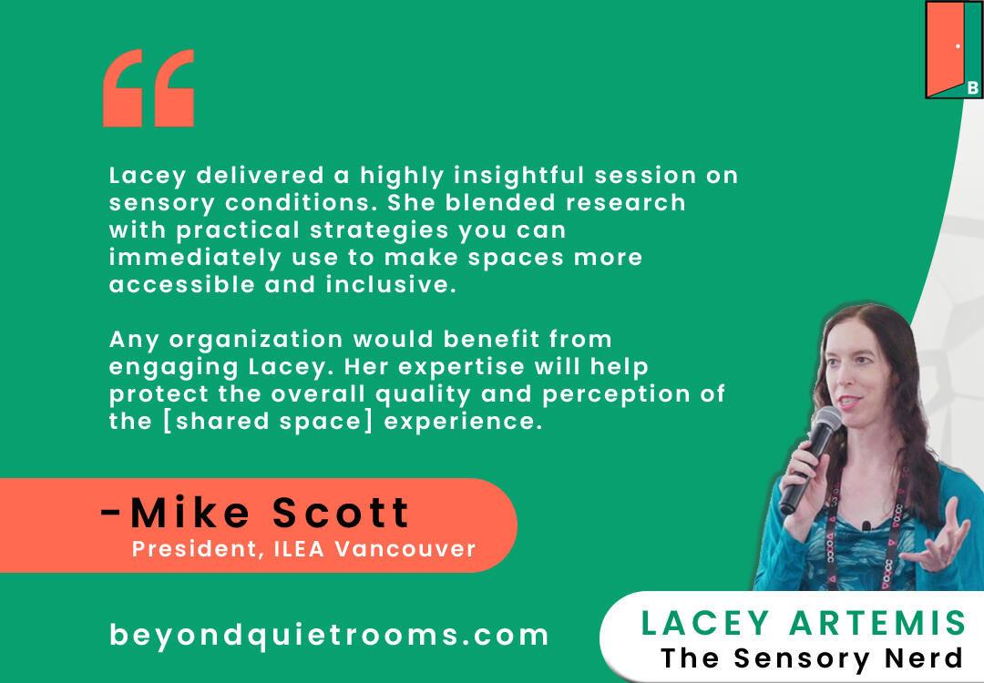As humans we’ve mastered aesthetics. We’ve mastered branding. We’ve even mastered user experience. But we have almost no literacy around sensory design, and it has come to be a key determining factor who gets to participate in public life.Beyond Quiet Rooms (aka BQR) is the hub for information, statistics, resources, and more around sensory accessibility from a systems lens.aka "Sensory Accessibility for the Modern Overwhelm Era"BQR is the education and advocacy branch of Neuromix Consulting, headed by Lacey Artemis aka The Sensory Nerd. You can find out more about Neuromix's consulting services here. You can also read our Whitepaper.Quiet rooms are to sensory overwhelm as coffee is to chronic fatigue - it's better than nothing, but it's not the true solution.