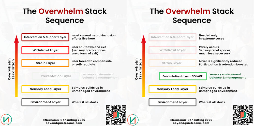 Why This MattersThis is not just an accessibility concern. It is a social, economic, and public health issue.Most sensory-friendly initiatives focus on isolated accommodations or compliance-based checklists. While well-intentioned, these approaches rarely account for cumulative sensory load, contextual tradeoffs, or the reality that most people disengage quietly rather than filing complaints.
